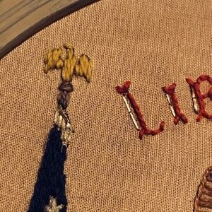 Vintage Liberty Bell Framed Crewel Needlework Americana