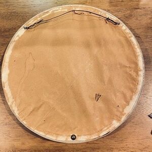 Good vintage condition with a small mark at the 6 o’clock on the outside edge of the fabric and a hole in the paper backing. See photos for both.