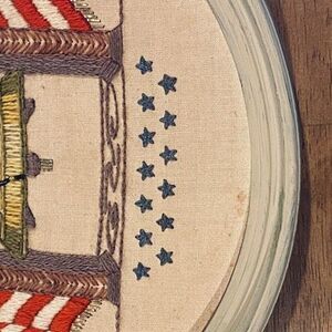 Vintage Liberty Bell Framed Crewel Needlework Americana 13” Round Patriotic Art