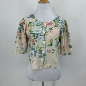 VINTAGE LIBERTY HOUSE FLORAL CROP TOP WOMEN S M SMALL MEDIUM MID SLEEVES CURTAIN