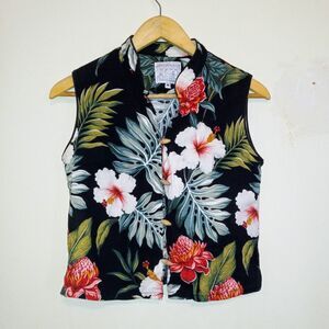 Vintage Liberty House Young Hawaii Cropped Shirt-Medium-Toggle Button-Sleeveless