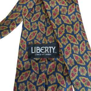 Vintage Liberty of London 100% Silk Tie Necktie Men's Navy Blue Floral Pattern