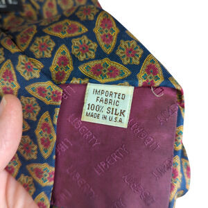 Vintage Liberty of London 100% Silk Tie Necktie Men's Made in the USA Navy Blue with Pink Burgundy Floral Pattern
