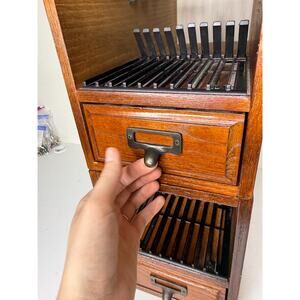Vintage Library Card Catalog Pair Set Lot Of 2, Stackable Wood Brass Cabinet