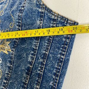 Tags: vintage denim cotton metallic embroidery pearl beads acid wash jean jumper dress Y2K punk rock