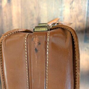 A well preserved piece, signs of wear on hardware, scuffs at the top sides. Interior is nice and clean, patina as shown on the inner buttons and minor traces of patina on the interior divider around buttons. See pictures for more details.