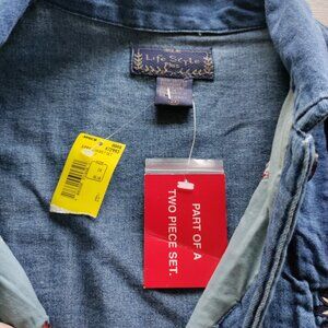 Vintage Life Style Plus Woman's Cotton Floral Embroidered Button Front Shirt