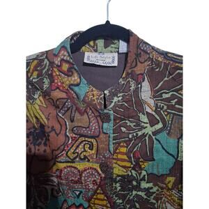 Vintage Life Style Womens 2X Quilted Floral Patchwork Artsy Boho Cardigan Jacket Art to wear Fall Autumn Browns Earthy Grannycore Classy Elegant Casual Office