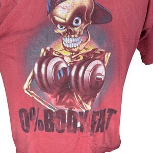 Vintage Lifting Workout 0% Body Fat Skeleton T-Shirt Men’s Large Pink Y2K Tee