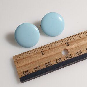 Elegant vintage light blue clip-on earrings with a minimalist round design. Lightweight and comfortable to wear, these retro-style accessories are versatile for any occasion.