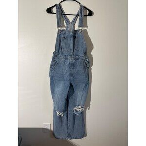 Vintage Light Blue Distressed Denim Overalls Small Adjustable Straps