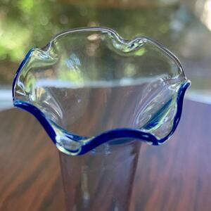 Vintage Light Blue Glass Bud Vase with Scalloped Edge – Delicate & Elegant