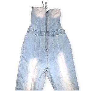 Stylish light blue jumpsuit. Features a high waist and front zipper. Perfect for casual outings.