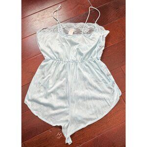 Vintage Light Blue Lingerie Set With Lace Details & Satin Finish - Medium Size B
