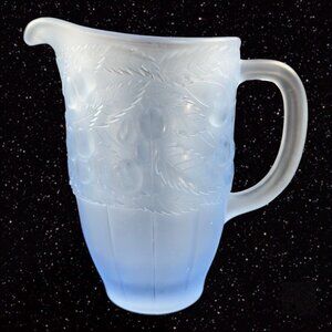 Vintage Light Blue Satin Frosted Glass Raised Cherries Leaves Carafe Pitcher Jug