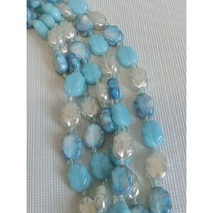 Vintage Light Blue & Silver Leaf Shaped Beads Multi Strand Choker Style Necklace