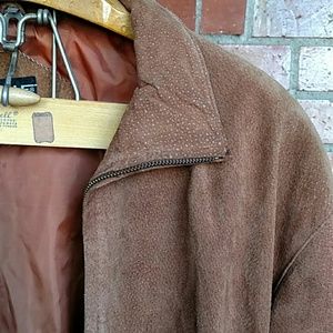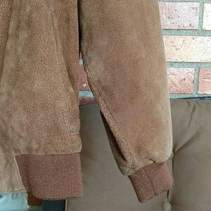 This thrift store gem is light brown with a slightly orange tinge. It has a classic bomber silhouette with slight fading and a random green mark on the back. Perfect for a chic, easy fall outfit. It has shoulder pads but that could be easily removed. Feel free to make an offer!