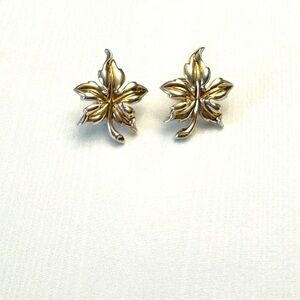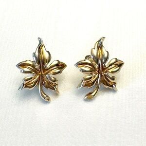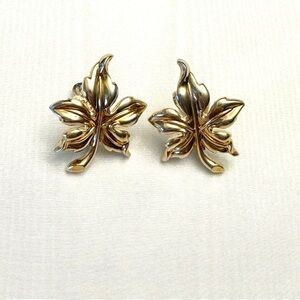 Vintage Light Gold Tone Crown Trifari Leaf Clip On Earrings