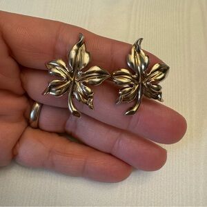 Vintage Light Gold Tone Crown Trifari Leaf Clip On Earrings Excellent pre owned condition.