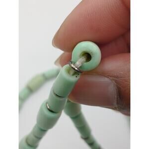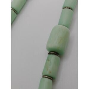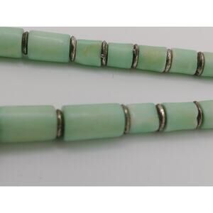 Vintage Light Green Bone and Silver Necklace 8 3/4"