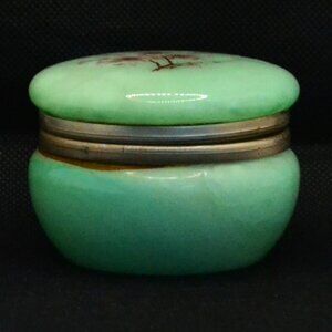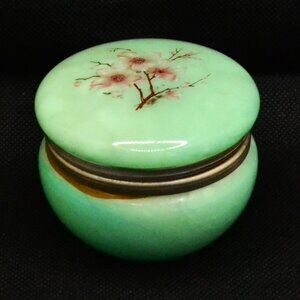 Vintage Light Green Italien Alabaster Trinket Holder With Cherry Blossom Lid