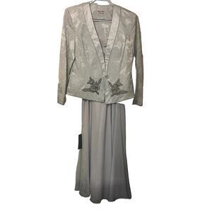 Vintage Light Grey Blue Mother of the Bride Pearl Accent Jacket Dress Sz 12 NWT