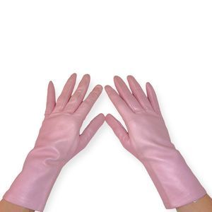 Vintage Light Pink Leather Gloves, labeled Size M.