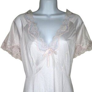 Vintage 1970s Baby Pink Long Nightgown Lace Nylon Size L Tie Back USA