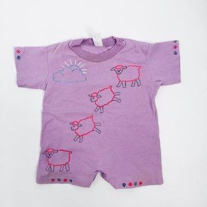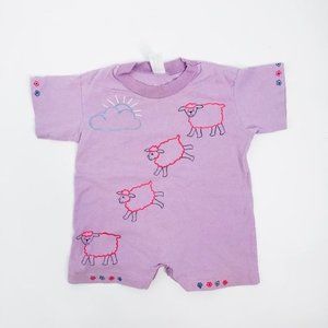 Vintage Light Purple Flower & Sheep Onesie with Buttons - 18M