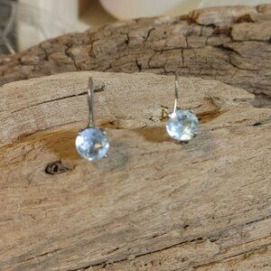 Vintage Light Sky Blue Sterling Silver 925 Topaz 8mm Drop Earrings Hook Backs