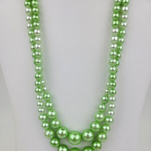 Vintage Light Soft Green Necklace Made in Japan Graduated Beads Two Strands 20in