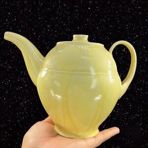 Vintage Light Yellow Stoneware Ceramic Teapot Yellow Glazed Paneled W Lid 9”W
