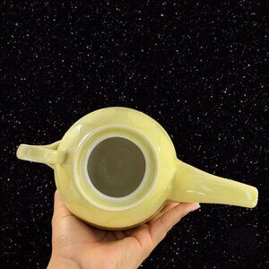 Vintage Light Yellow Stoneware Ceramic Teapot Yellow Glazed Paneled W Lid 9”W 6.5”Wide