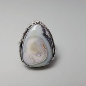 Vintage Light Gray Cabochon Stone Ring, Silver Tone Bezel Set Size 8.5 Band