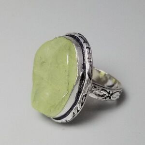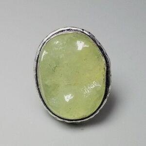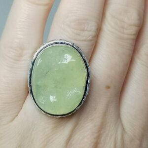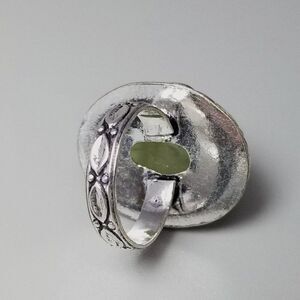 Vintage Light Green Oval Ring, Size 7 Silver Tone Bezel Set Band, Estate