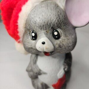 Vintage Light-Up Mouse Figurine with Santa Hat & Stocking Holiday Decor 6" H