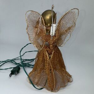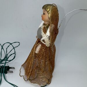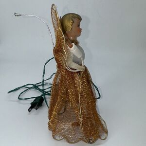 Vintage Lighted Angel Christmas Tree Topper Gold MCM Lights Pipe Cleaners WORKS