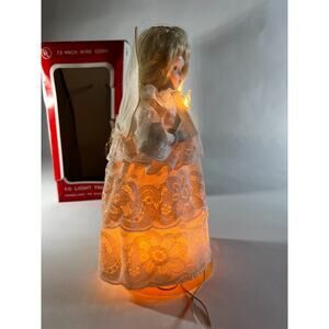 Vintage Lighted Angel Christmas Tree Topper Works Porcelain Face in Original Box