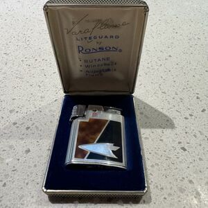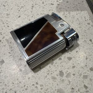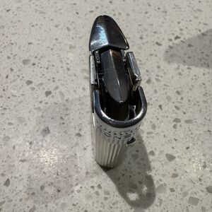 Elegant vintage lighter featuring a sleek silver and black design. Perfect for collectors and enthusiasts.