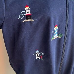 Vintage Lighthouse Embroidered Zip Up Jacket Navy Coastal S