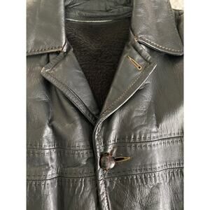 Vintage Lightly Distressed Black Leather Trench Coat Wooden Button Mens Med 38