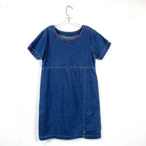 Vintage Lightweight Blue Denim Knee Length Dress with Ladybug Embroidery Detail