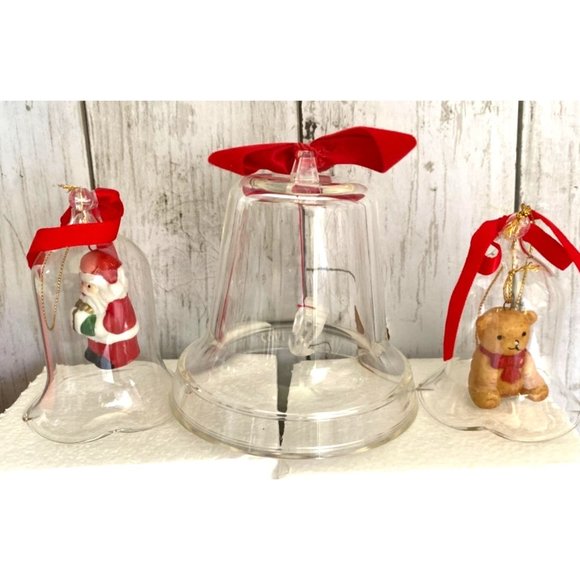Vintage L'il Chimers Crystal Glass Bell CHRISTMAS ORNAMENT, Bear Santa