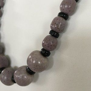 From the 1980's, a cute chunky choker-style necklace. Lilac 1/2" diameter graduated-size beads interspersed with smaller black beads.