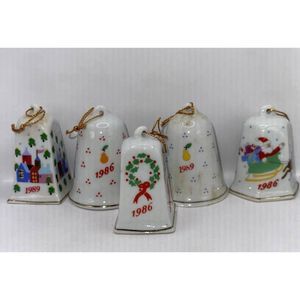 Vintage Lilian Vernon LVC Porcelain Miniature Christmas Bells Boxes‎ 1989 1986