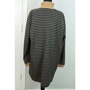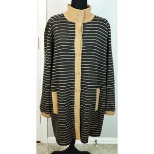 Classic and timeless! 24.5" Pit to pit, 34.5" length. Plus size 16. Soft and comfortable! Light discoloration in one area as shown in last pic. Vintage Lilli Ann WOOL Tan Gray Striped Cardigan Long Mid Length Button Down 16