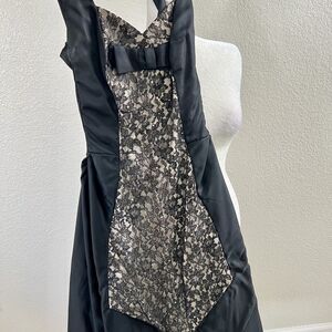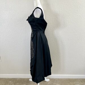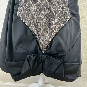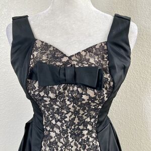 Vintage Lilli Diamond 1960s Black Chiffon Lace Bubble Bow Detail Pencil Dress
