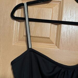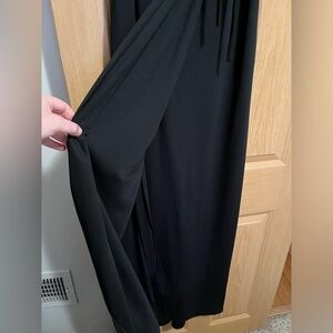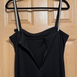 Women's black slinky polyester spaghetti strap sleeveless maxi party/cocktail dress.