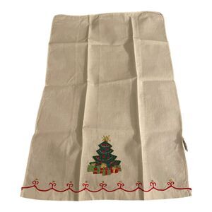 1990s vintage Lillian Vernon tea towels, white with Christmas motifs appliqued on. One has a Christmas tree with presents and red scalloped edging and the other has Santa's red sleigh with green edging. 100% cotton, approximately 21.5"x 13". In excellent vintage pre-owned condition with no visible flaws.