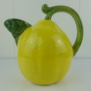 Vintage Lillian Vernon Lemon Pitcher with Stem Handle and Leaf Spout